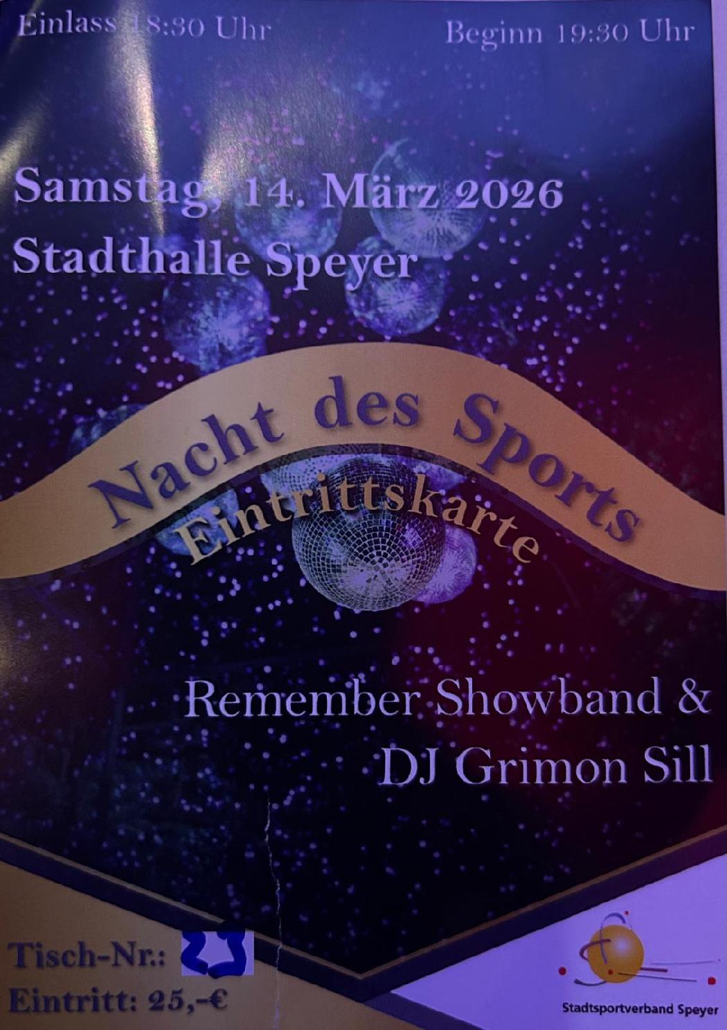 "Nacht des Sports" am 14.3.2026 mit TSV_GästenMehr als 16.000 aktive und passive Sportlerinnen und Sportler gehören den mehr als 40 Speyerer Sportvereinen an, deren örtlicher Dachverband der Stadtsportverband ist. Am ...