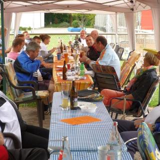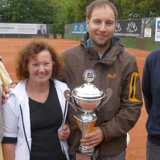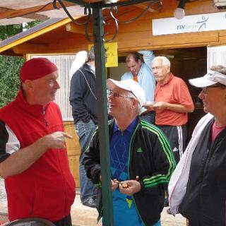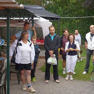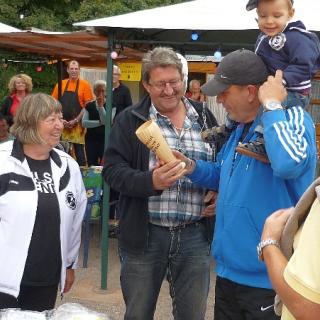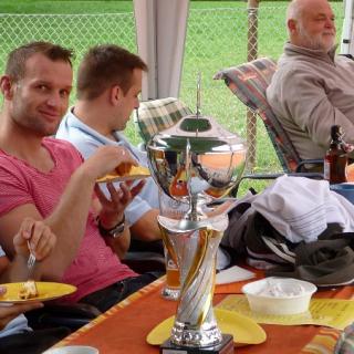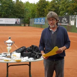 Harald Köhler überreichte bei der Siegerehrung den vom TSV-Vorstandsmitglied Herbert Kotter gestifteten Wanderpokal dem strahlenden Team. Der Tennisvorstand dankte dem Helferteam für seinen Einsatz und den Frauen für ihre Kuchen- und Salatspenden. Anschließend begann der gemütliche Teil , in dem zur Stärkung der Spieler und Besucher Steaks, Bratwürste und Salate gereicht wurden.