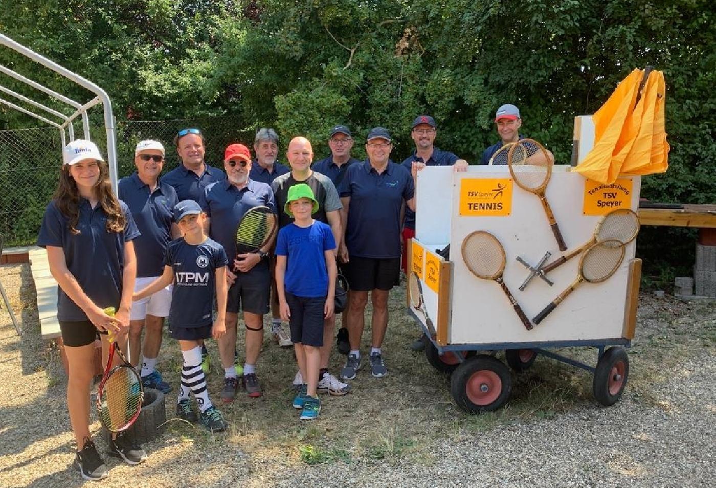 Bei hochsommerlichen Temperaturen um die 38 Grad liesen es sich die gut gelaunten Tennis-Spielerinnen und Spieler auch 2023 nicht nehmen, am Brezelfestumzug teilzunehmen. Erfreulich war, dass dieses Jahr mehrere Jugendliche, allesamt angehende Wimbledon-Gewinner, mit am Start waren. Erstmals konnten auch die neu beschafften und von den Mitgliedern selbst bezahlten Polohemdem mit TSV Aufdruck beweisen, was atmungsaktiv bedeutet. Die neuen Hemden haben ihre Feuertaufe bestanden und kamen zudem sehr gut bei den Zuschauern an. Die Tennis-Cracks haben den Verein somit gut in der Öffentlichkeit repräsentiert. Nach dem Umzug trafen man sich auf dem Festplatz im Biergarten, um auch dort ein großes Lob von der neuen Bretzelfest-Königin Lea I. zu bekommen.