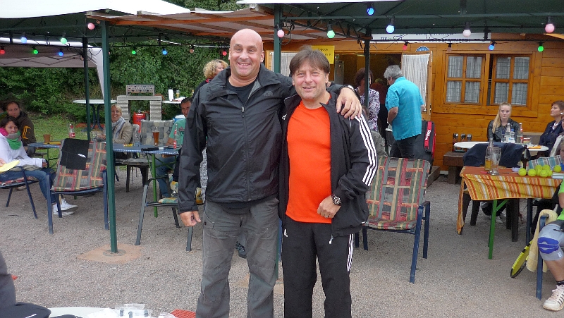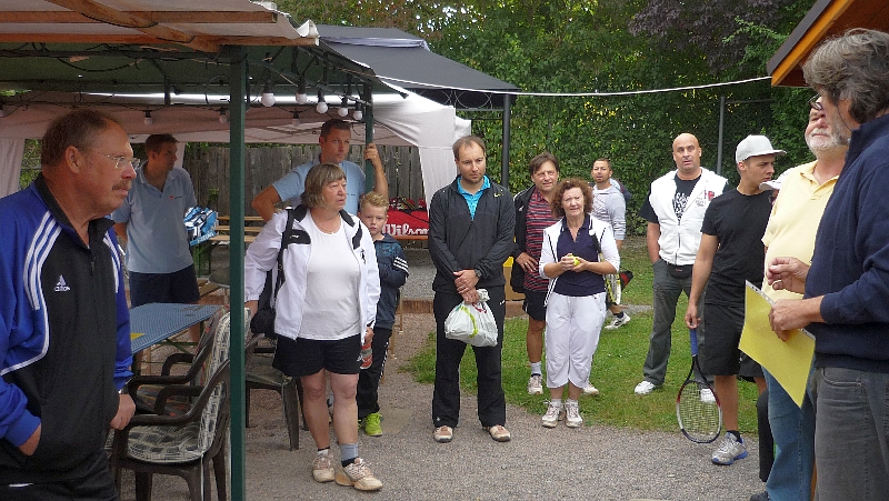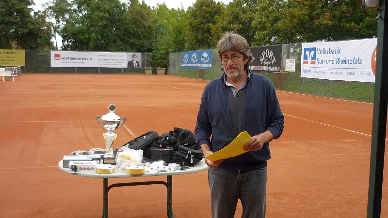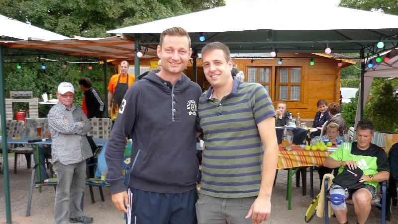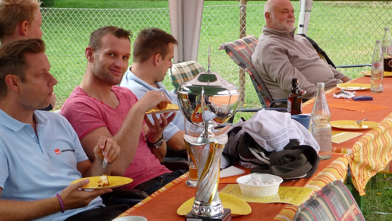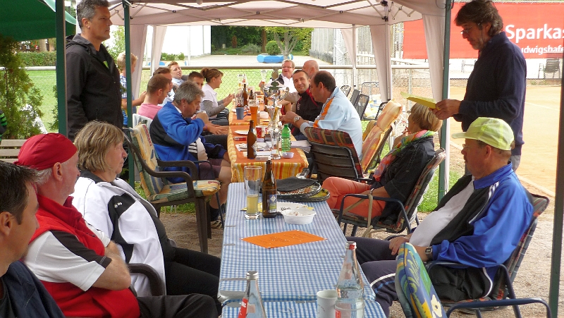 Harald Köhler überreichte bei der Siegerehrung den vom TSV-Vorstandsmitglied Herbert Kotter gestifteten Wanderpokal dem strahlenden Team. Der Tennisvorstand dankte dem Helferteam für seinen Einsatz und den Frauen für ihre Kuchen- und Salatspenden. Anschließend begann der gemütliche Teil , in dem zur Stärkung der Spieler und Besucher Steaks, Bratwürste und Salate gereicht wurden.