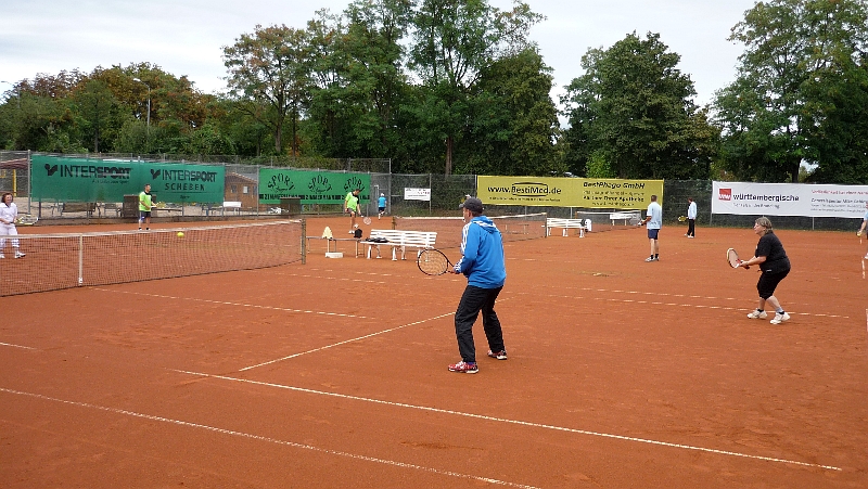 Bei durchwachsenem Wetter wurden die Spiele am Samstag, den 23.08.2014, auf den TSV-Tennisplätzen in 2 Gruppen ausgetragen. Nach der Begrüßung von Abteilungsleiter Klaus Maier konnten die Spiele beginnen. Die Beteiligung mit 9 Mannschaften war in diesem Jahr erfreulich hoch. Für die Fa.AbbVie spielten Wolfgang Schreiner, Andreas Bartsch, für die Fa.BestiMed Roland Buchholzer, Karl-Heinz Rechert, für die Commerzbank Arnel Mesic, Marc Baumgärtner, für die Fa.Compas Thomas Sieberling, Waltraud und Roger Halling, für die Polizei Achim Bossek, Gerhard Matz, für die Fa.Schenk Gabi Schenk und Stefan Hildebrand, für die Fa.Von der Heydt I Elvira Brechtel, Markus Fröhlig, für die Fa.Von der Heydt II Alexander Strohmeier, Christian Tolone und für die Württembergische Versicherung Andreas und Thomas Limmer.