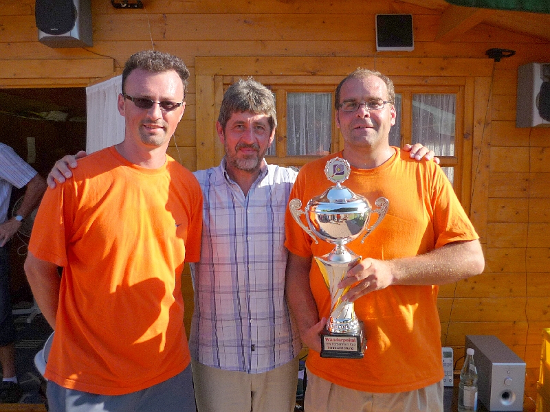 Klaus Maier überreichte bei der Siegerehrung den vom TSV-Vorstandsmitglied Herbert Kotter gestifteten Wanderpokal dem strahlenden Team. Der Förderer Cup verbleibt nun für ein Jahr bei der Fa.Von der Heydt.